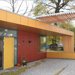 Das „freie Spiel“ der Fassadenstruktur, in der der einfache Rhythmus der Gliederung immer wieder unterbrochen wird und sich zu neuen Formen zusammenschließt, soll die kreativen und schöpferischen Kräfte der Kinder anregen und ihnen so die Welt der Erwachsenen nahe bringen.