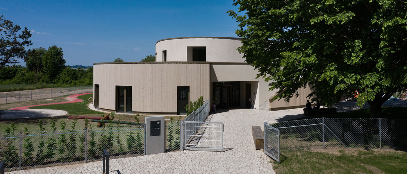 Heute einen nachhaltigen, gemeinschaftlichen Ort für die Zukunft bauen. So haben wir die Aufgabe verstanden. Ein Spiel- und Lernort mit Wiedererkennungswert. Für Kinder, Betreuer und Eltern.