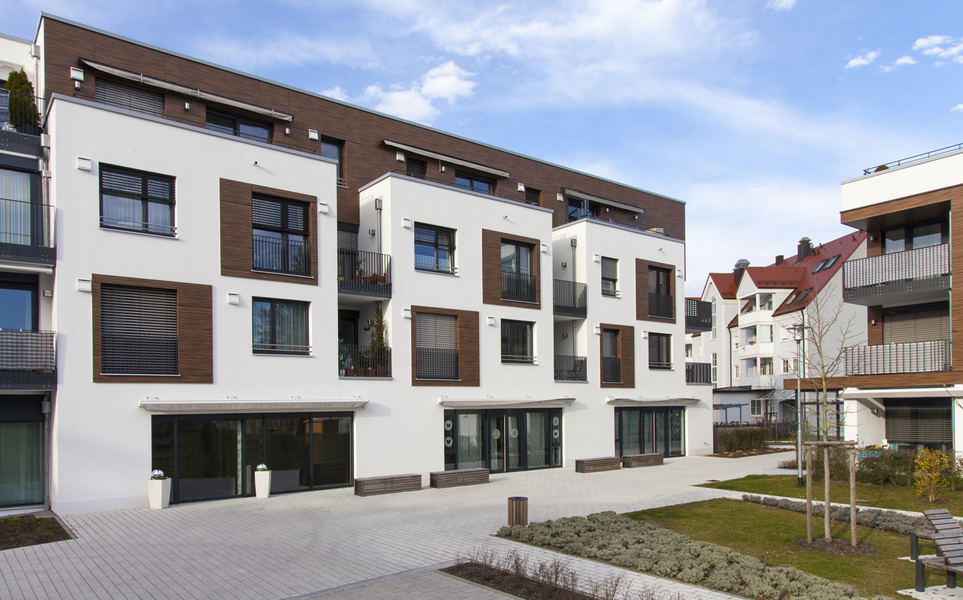 Mit dem sozialraumorientierte Wohnquartier "Kleiberhof" wurde ein Miteinander von Jung und Alt geschaffen, in dem Gemeinsinn, Solidarität und kooperative Vernetzung gefördert und ein generationsübergreifendes und zukunftsweisendes Wohnen erlebbar gemacht wird. Die Fassaden der beiden im Dialog stehenden Baukörper mit seinen Vor- und Rücksprüngen, offenen und intimen Bereichen nehmen den Duktus der umliegenden Bebauung auf. Die Bekleidung der Loggien, deren Rhythmus die Fassade zum Schwingen bringt, steht als städtebaulicher Resonanzkörper im Dialog zum denkmalgeschützten Brauereigebäude.