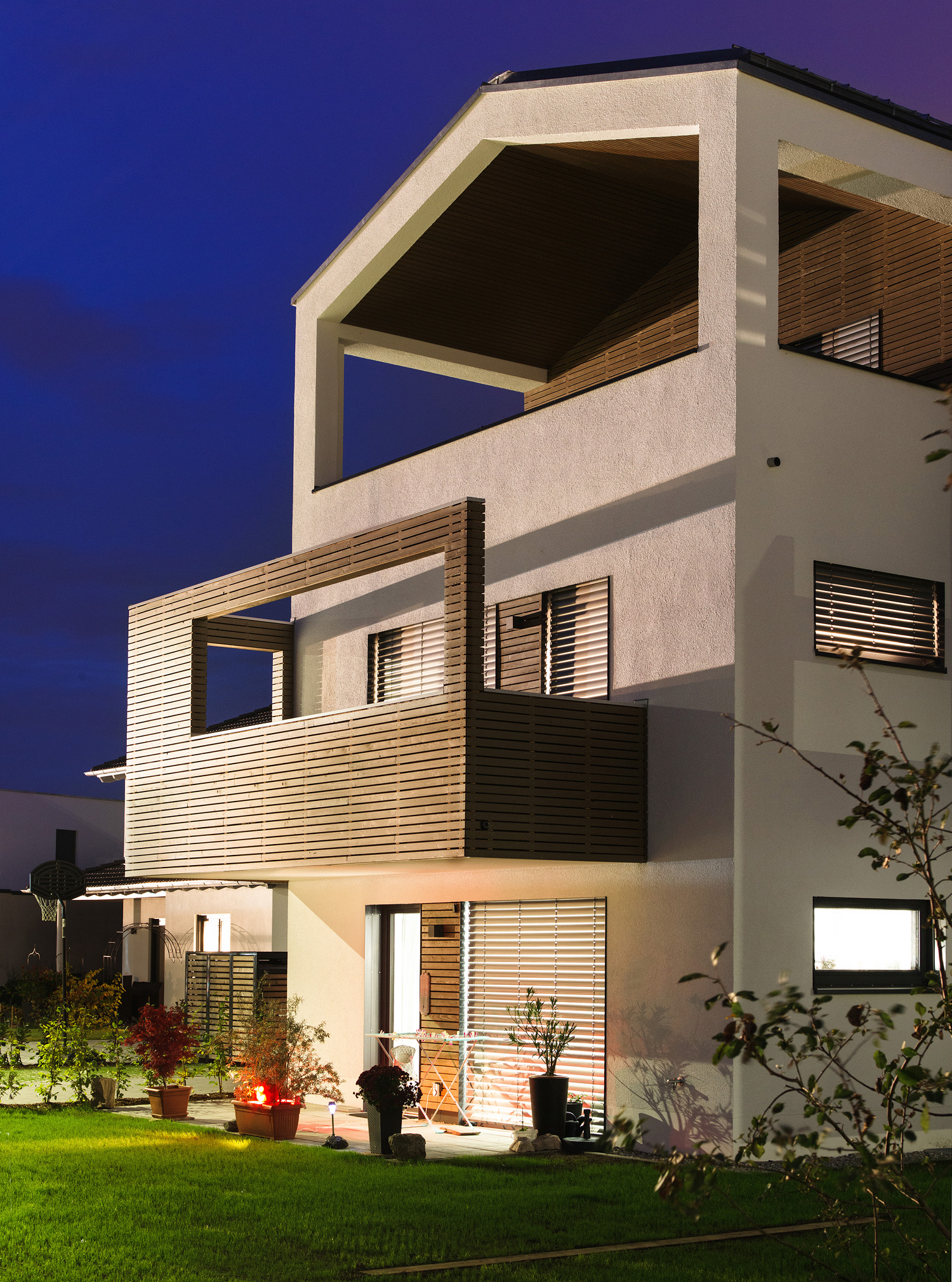 Für die optische Erscheinung zur Einfügung in das Ortsbild, wurden die Baumassen auf jeweils 2 Teilhäuser mit gemeinsamer Erschließung verteilt. So konnte das Baufeld optimal ausgenutzt werden. Die Wohnungen wurden bedarfsgerecht und förderfähig geplant.